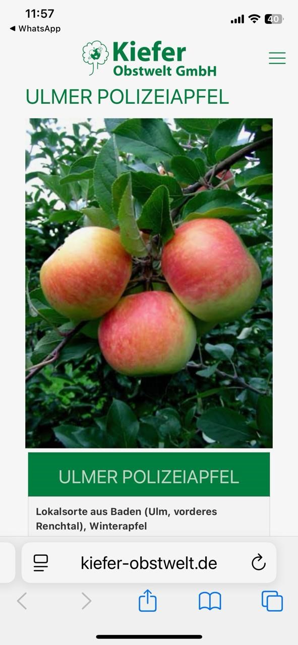 Germany 22 hat uns zu dieser Baumpflanzchallenge nominiert. Wir fühlen uns geehrt und haben selbstverständlich alle Anstrengungen unternommen, um ein würdiges Bäumchen zu finden. Und wir wurden fündig: ein original "Ulmer Polizeiapfel". Das Ulm, auf das in diesem Namen hingewiesen wird, ist Ortsteil der Gemeinde Renchen im Ortenaukreis, in Süddeutschland, nördlich von Offenburg zwischen dem Schwarzwald und der französischen Grenze gelegen. Wer Näheres hierzu erfahren möchte, der verwende das Suchwort "Simplicissimus".