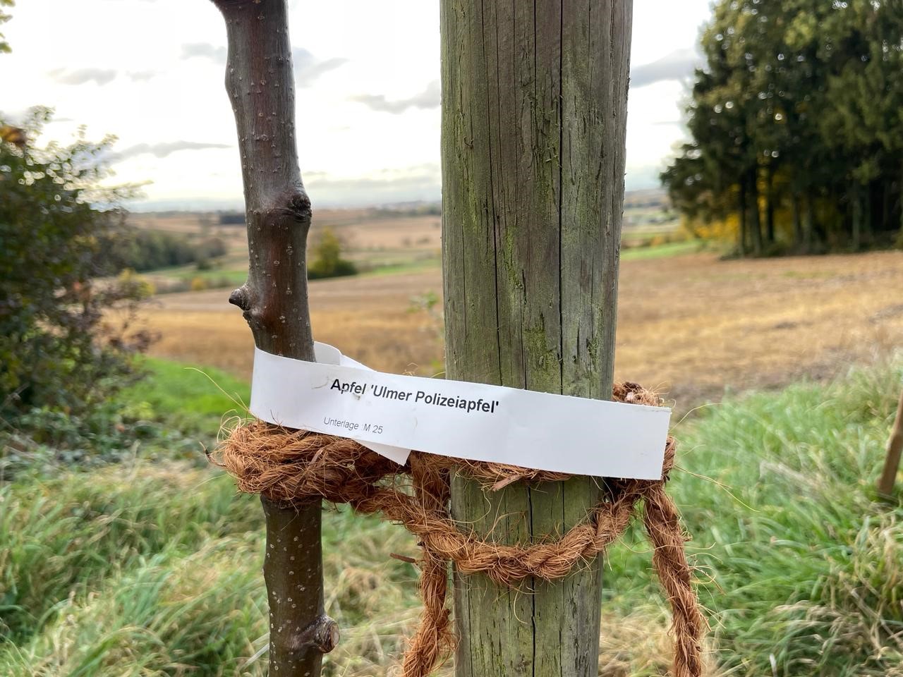 Es handelt sich um eine alte Obstsorte, wie sie in Hausgärten und Streuobstwiesen Verwendung findet. Das Bäumchen pflanzten wir auf einer Wiese am Waldrand von Broggingen und soll, wenn es einmal Früchte trägt, zur Ernährung der Waldtiere dienen. Wir geben den Auftrag nunmehr weiter und nominieren